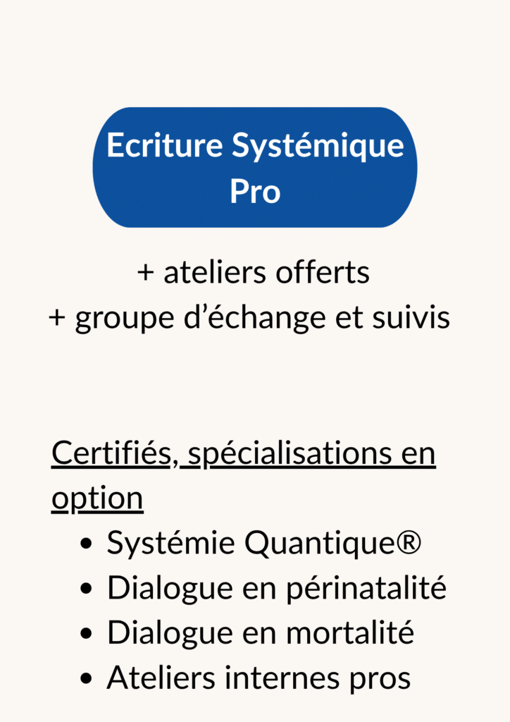 Pour guérir d’un malaise ou autre, nous avons besoin de traiter toutes les parties de l’Être ainsi que du corps. L’Ecriture Quantique permet d’avoir une vue d’ensemble et un plan d’action plus rapide que n’importe quelle discipline. On sauve du temps et on accélère la régulation autant physique quémotionnelle. Tous les spécialistes du corps, de l’esprit et accompagnant(e)s devraient avoir dans leur coffre à outil ce mode de communication. C’est un complément à toutes les techniques existantes, professions, méthodes de travail etc… c’est ce qui la rend utile pour tous et toutes. “